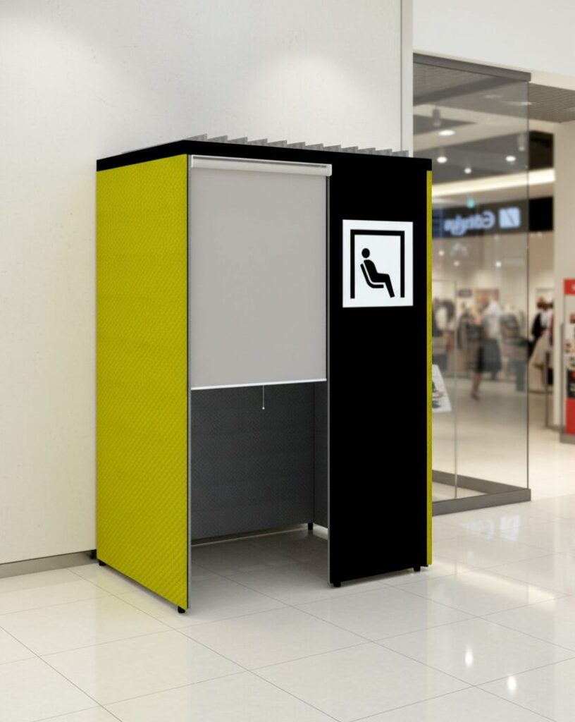 すでにカームダウンボックスは、市役所ロビーやスポーツ施設、市民ホール、ショッピングモールなど、多様な公共の場での導入実績があります 。