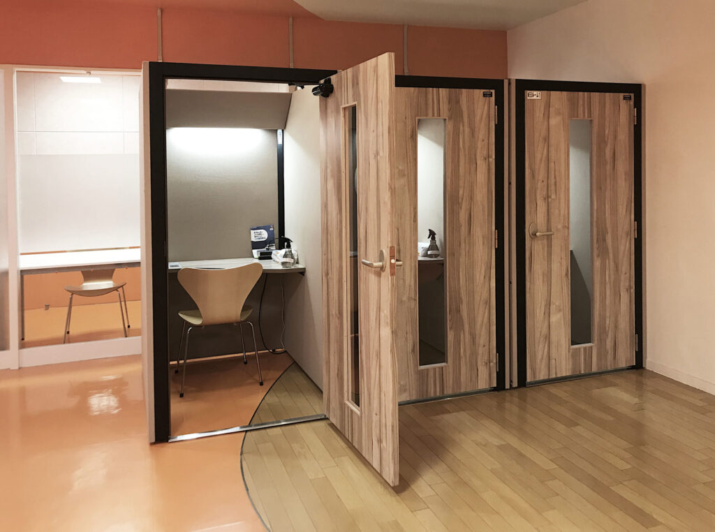 ※注1 個室ブース内で非常放送が聞こえるようになっているため完全防音にはなっていない。完全防音に